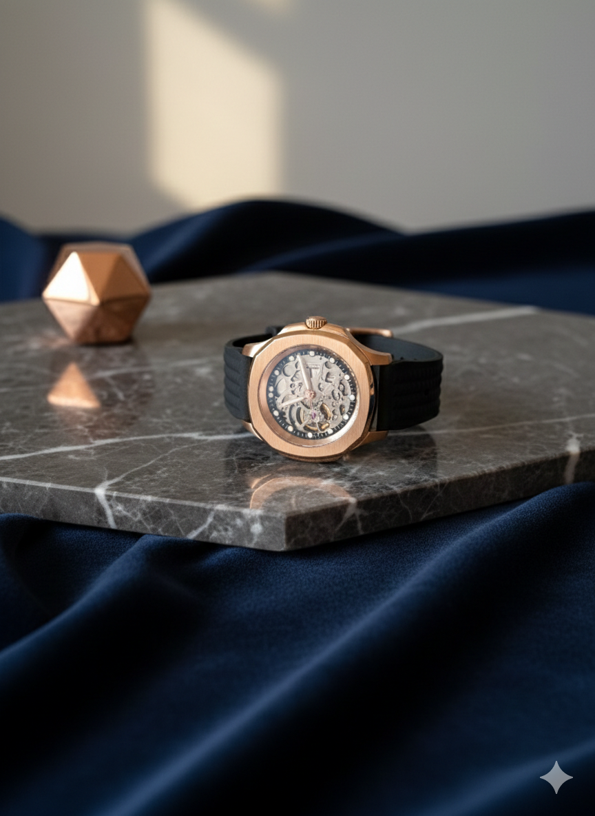 Épure visuelle et mécanique de pointe. Un garde-temps automatique conçu pour ceux qui ne font aucun compromis sur le style et la qualité.